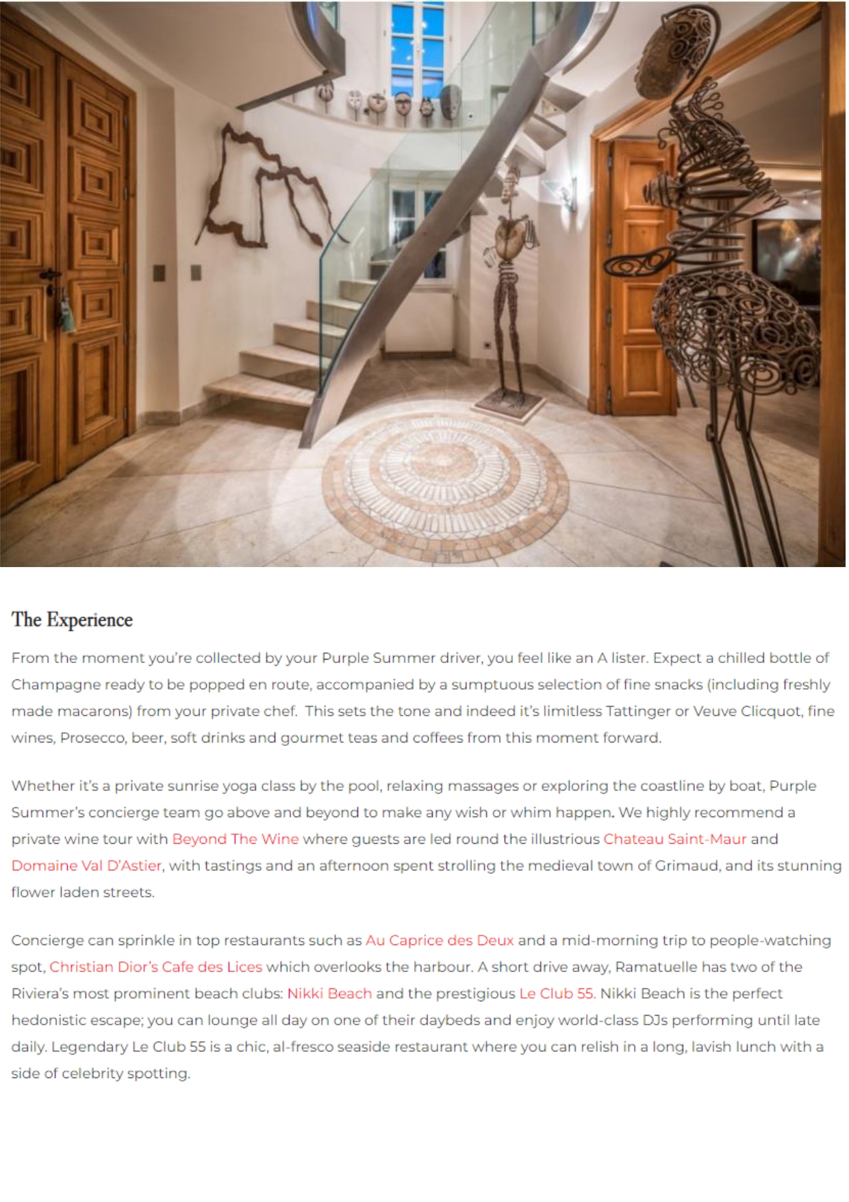 « Nous vous recommandons vivement une visite privée avec Beyond the Wine®, Wine Tours Golfe de Saint-Tropez, qui vous fera découvrir les illustres Château Saint-Maur et Domaine Val d’Astier, avec des dégustations et un après-midi consacré à la visite de la ville médiévale de Grimaud et de ses superbes rues fleuries. » Cliquez-ici pour lire l’article en entier.