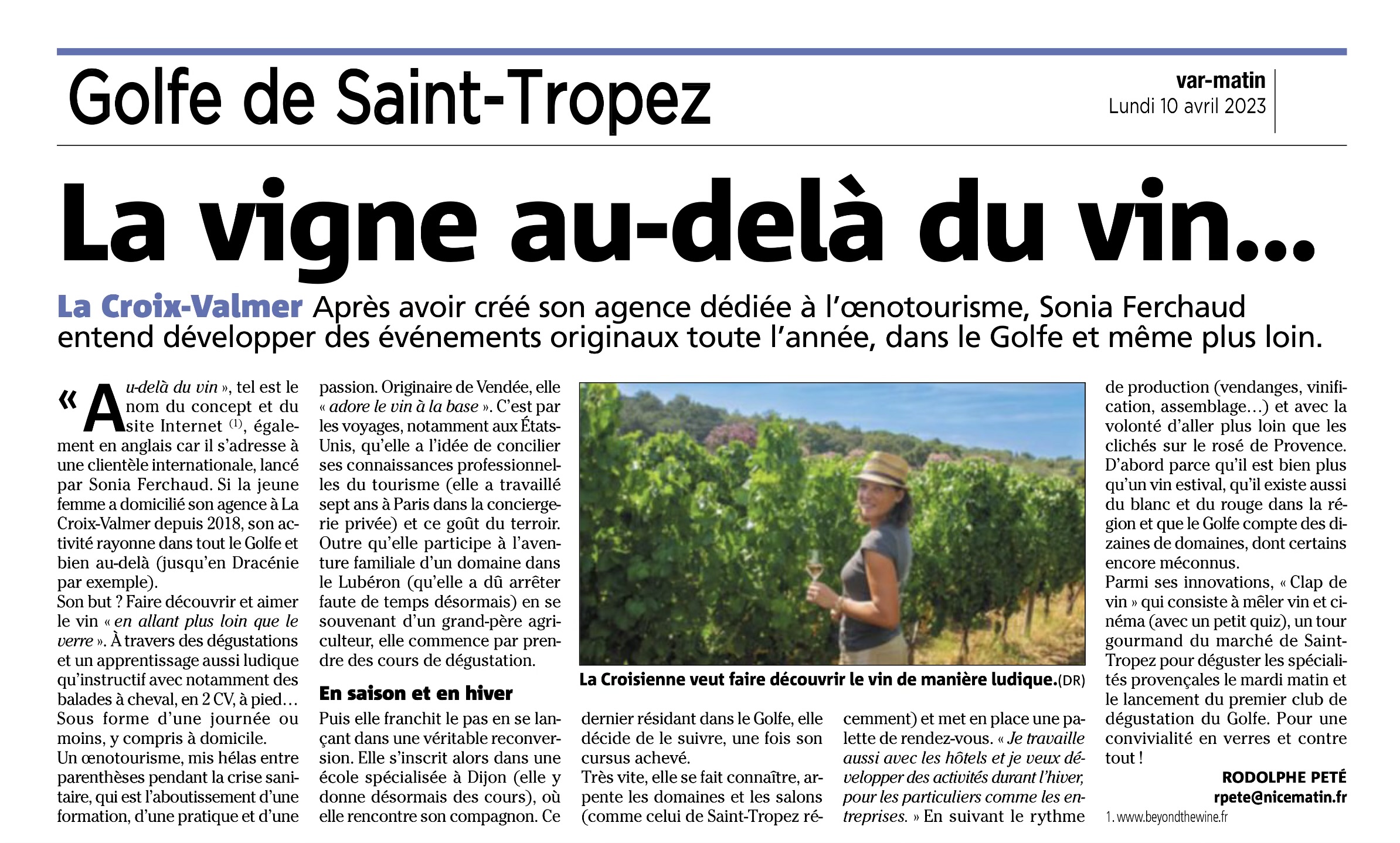 Depuis 2018, Beyond the Wine vous ouvre les portes d’expériences œnologiques exceptionnelles à La Croix-Valmer et sur le Golfe de Saint-Tropez en général. Imprégnez-vous de l’atmosphère enchanteresse de la Côte d’Azur. Explorez le monde riche et passionnant des vignobles locaux avec nous. Depuis 2023, nous proposons désormais des tours au-delà du Golfe de Saint-Tropez à bord de notre mini van tout confort et climatisé ; de 2 à 8 personnes. Rodolphe Pete var matin